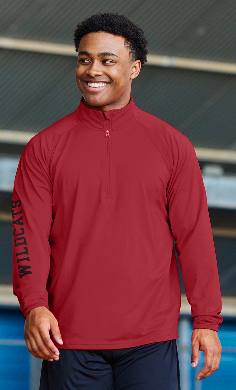 Stay comfortable in any season with this Sport-Wick Stretch 1/2-Zip Pullover. It's made with a 90/10 poly/spandex jersey and features a tag-free label, smooth-faced material, a chin guard for added comfort, cadet collar, taped neck, raglan sleeves, and open cuffs and hem. This pullover is perfect for customizing with embroidery, patches, and emblems.